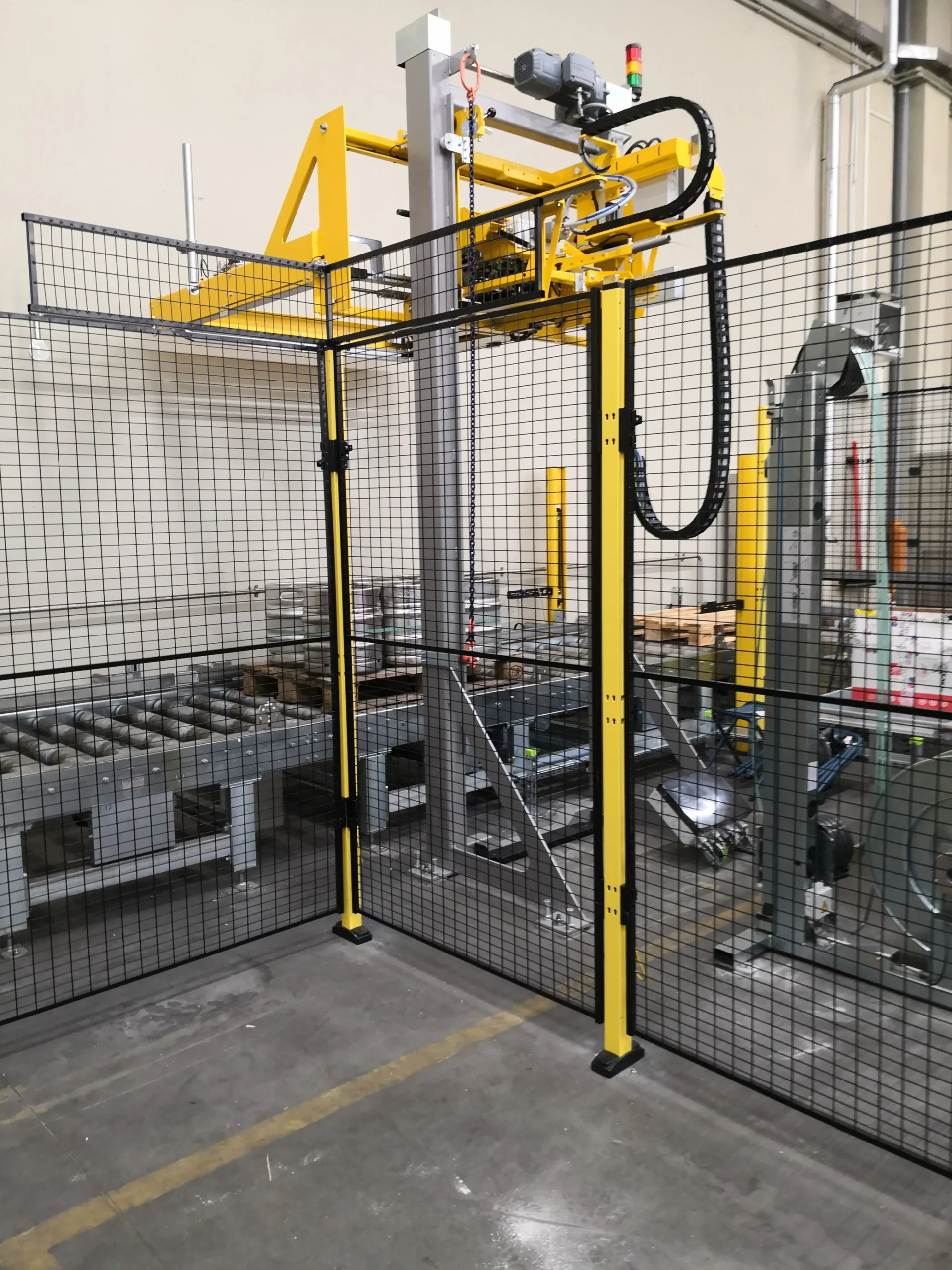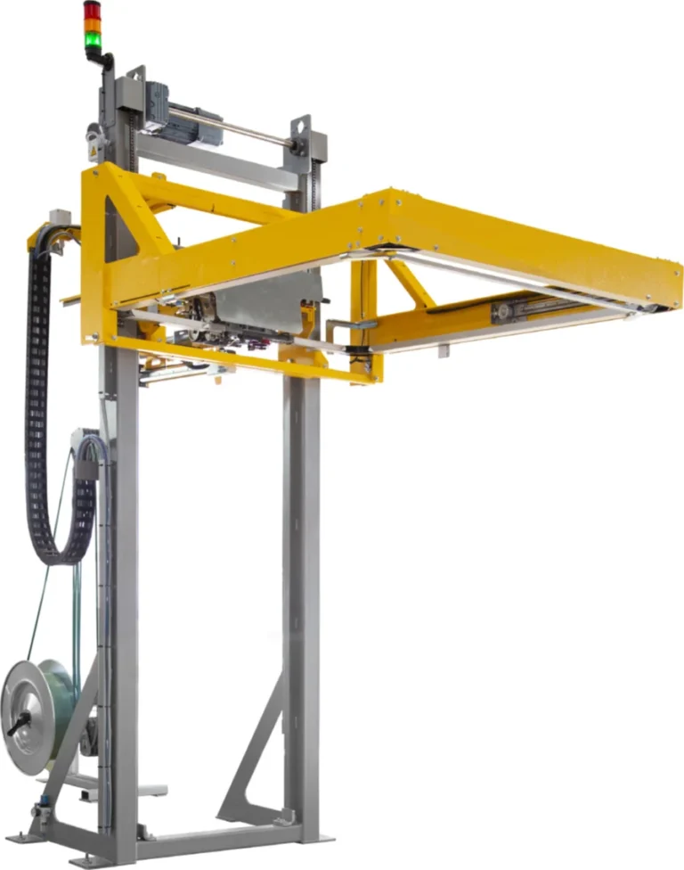 Wiązarka ramowa HSM3000 należy do rozwiązań stosowanych w automatyzacji pakowania palet, szczególnie tam, gdzie kluczowa jest stabilność ładunku i powtarzalność procesu. Urządzenie umożliwia szybkie i precyzyjne spinanie palet różnego typu, a dzięki swojej konstrukcji może być integrowane z istniejącymi liniami transportowymi.